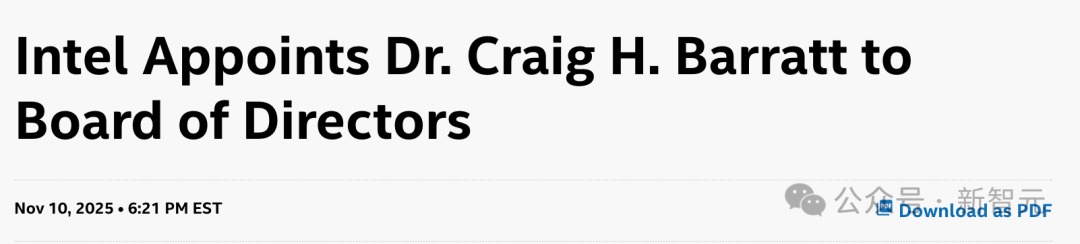 同在今天,英特尔还任命了Craig H. Barratt为董事会成员。