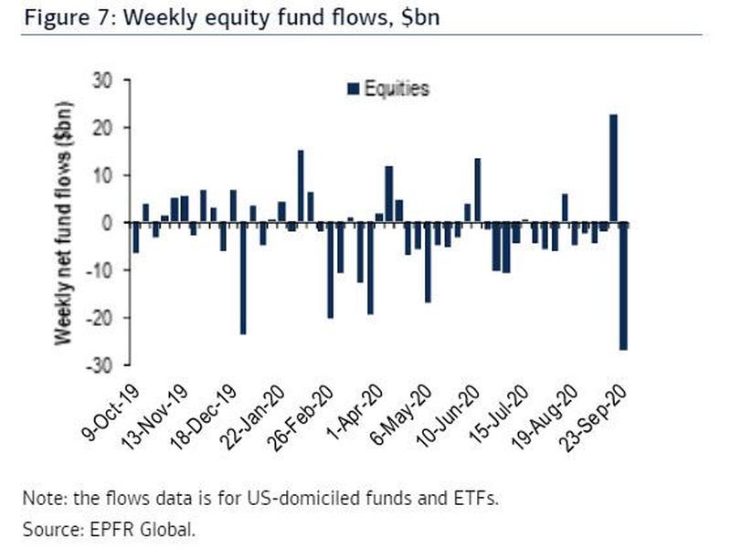 根据美国银行和EPFR Global的数据,在截至9月23日的一周,美国股票基金的资金流出为258亿美元,是3月份以来的最大资金外流。投资者撤出了本轮反弹中最热门的板块,这是自2019年6月以来从科技基金中撤出资金最多的一次。