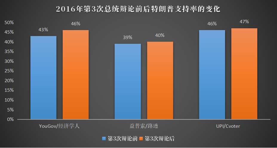 要知道,特朗普在2016年的大选辩论中可是实现了逆袭。当年特朗普在3场辩论前的支持率都落后于希拉里,但是他在最后两场辩论中表现出色,导致其支持率在当年的第2和第3场辩论后大幅上升。为其在2016年的大选中胜出奠定了基础。