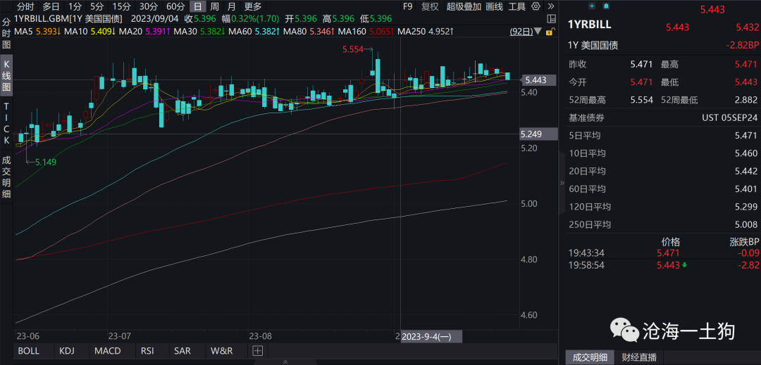 然而,一年美债回落至5.44%,所表达的预期更加放荡不羁,它认为,美联储明年会降息6次,最早明年5月份就会降息。