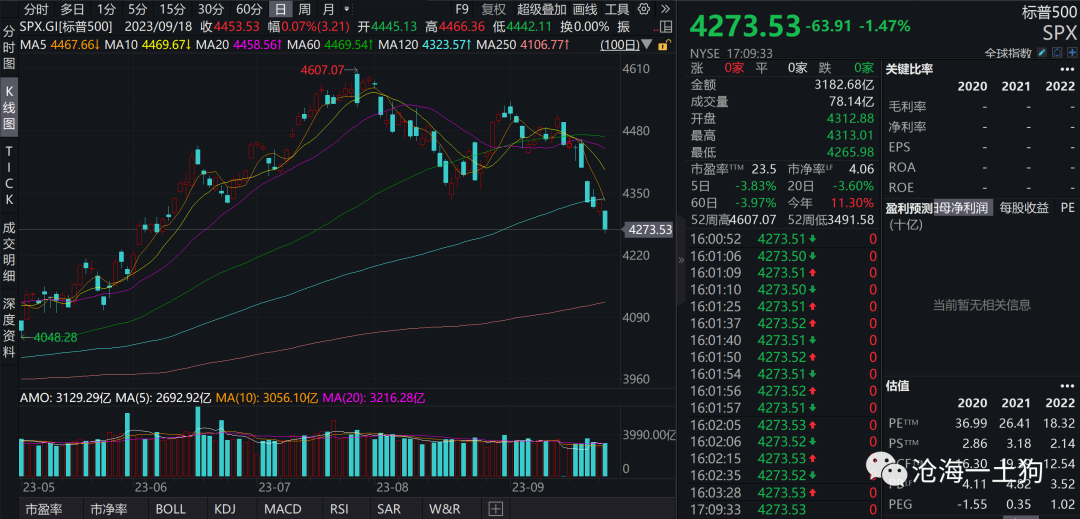 2023年9月26日,标普500指数继续大幅下挫1.47%,股票市场已经明确地表达了自己的担忧。