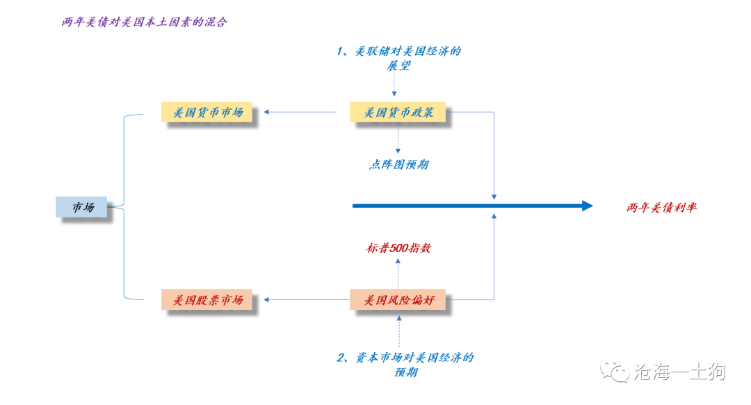 在《如何跟踪美国的货币政策和经济预期?》一文中,我们有讨论过,两年美债综合了两方面因素, 一、点阵图;二、标普500 。