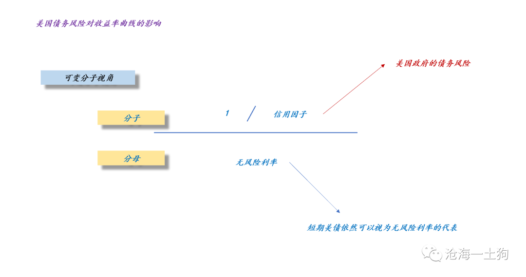 如上图所示, 十年美债的价格隐含了信用因子,即美国政府的债务风险,为了展示方便,我们把信用因子拿到分子上。