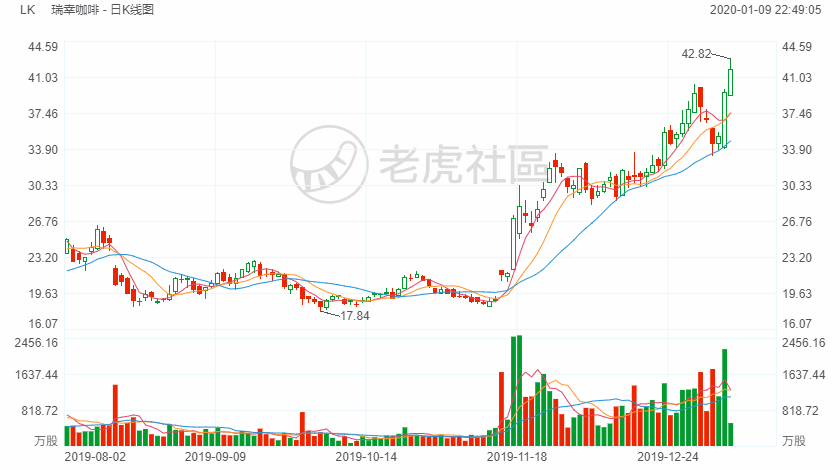 1月9日,瑞幸咖啡$(LK)$延续昨日涨势,盘中大涨超7%,创盘中纪录高位至42.82美元,市值首次超过100亿美元整数关口。