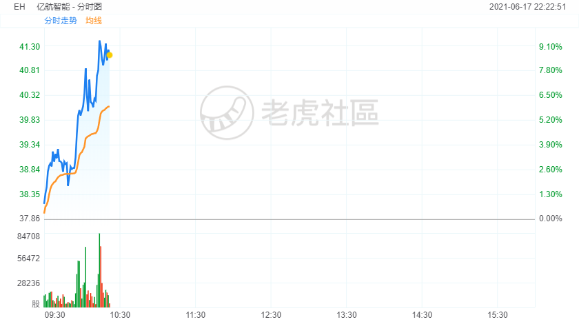 6月17日,亿航智能盘中走强,一度大涨超10%,本月股价累计涨幅已超50%。