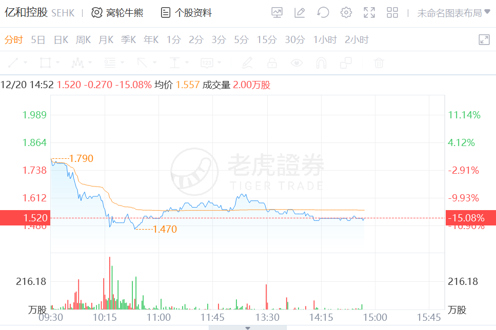 港股特斯拉概念股持续走低,亿和控股跌超15%
