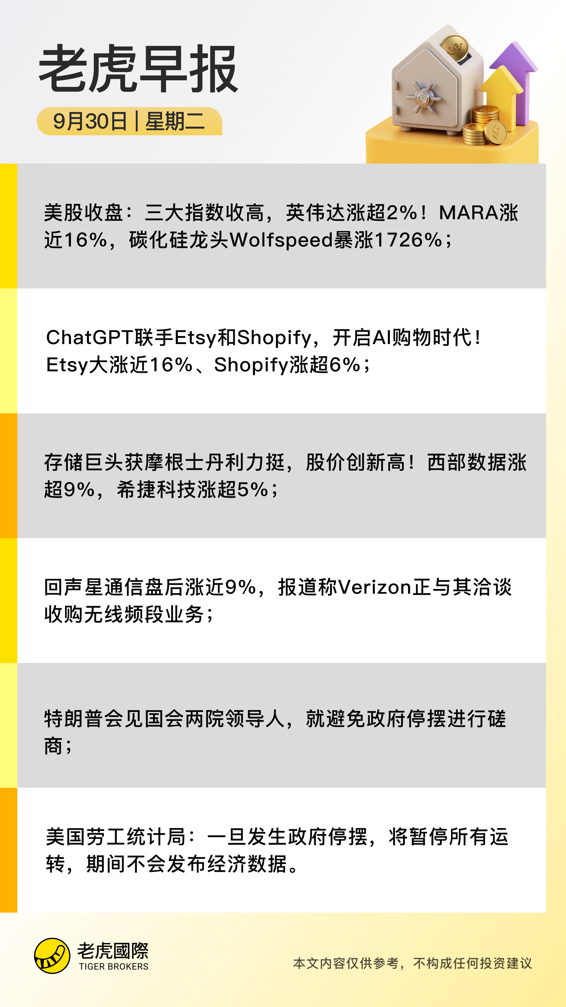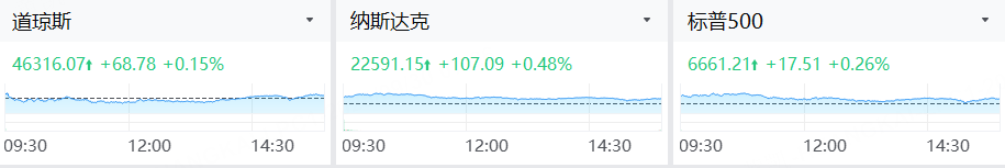 周一(9月29日),美股三大指数集体上涨。截至收盘,道琼斯指数涨0.15%,报46316.07点;标普500指数涨0.26%,报6661.21点;纳斯达克综合指数涨0.48%,报22591.15点。