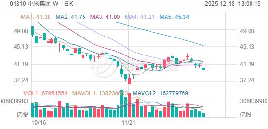 小米集团-W 上午跌超3%,可能连续四日录得阴线,本周跌幅超7%。