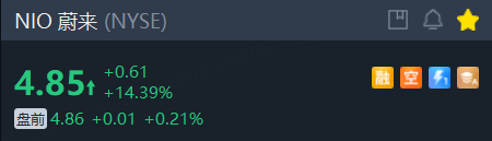 昨日大幅收涨14.39%的蔚来盘前续涨0.2%。二季度蔚来营收和交付量双创新高。三季度交付指引为6.1万台至6.3万台;三季度营收指引为191.1亿元至196.7亿元,两项指引均创历史新高。
