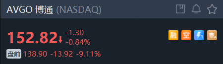 受博通盘拖累,芯片概念股盘前集体下跌,英伟达跌超2%,AMD、高通跌超1%。