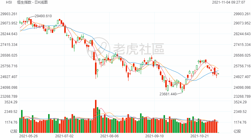 11月4日讯,港股三大指数集体高开,恒指涨0.46%报25141点,国指涨0.45%报8897点,恒生科技指数涨0.78%报6322点。