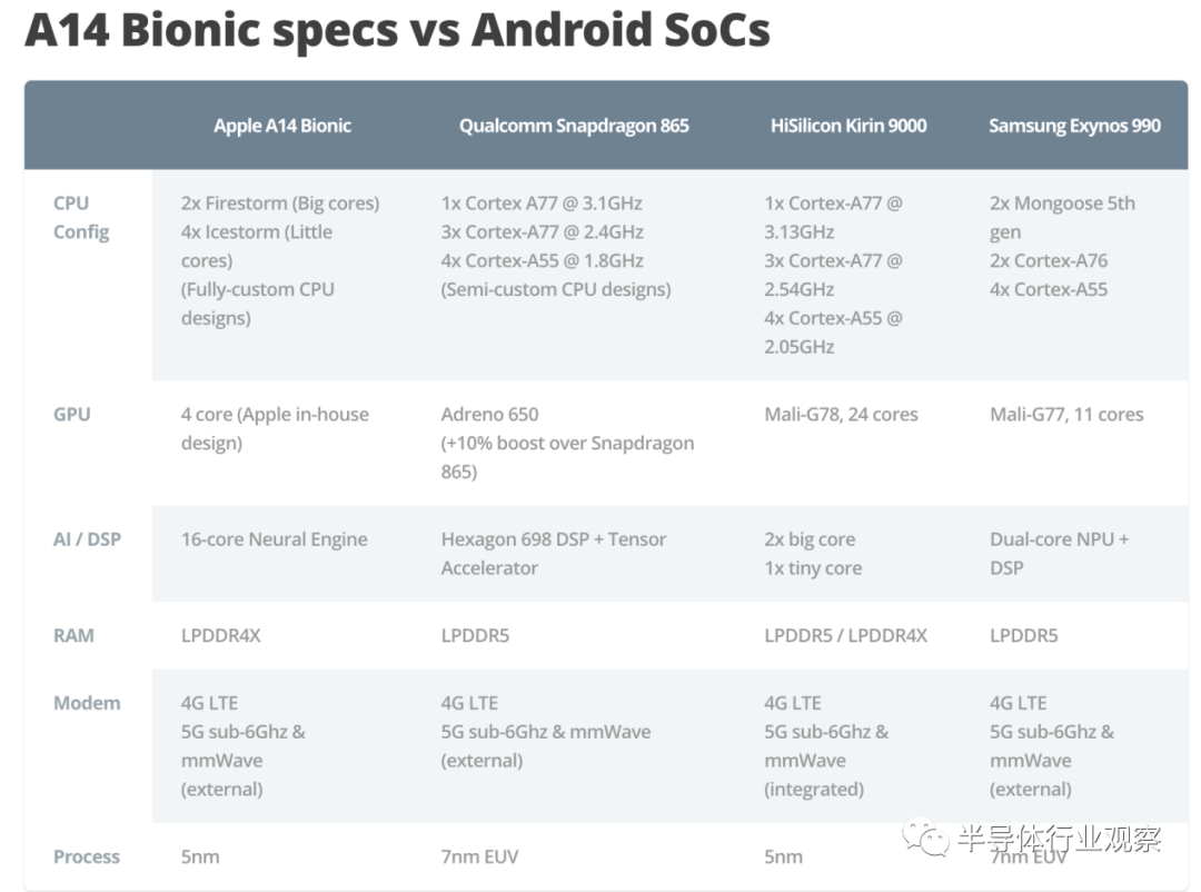 A14 Bionic显著改善了 CPU和内存,但在这一代人中获得的GPU数量有限,这清楚地表明了苹果的雄心壮志。随着即将推出配备Arm的Mac,A14的CPU增益翻倍,从而缩小了移动和笔记本电脑产品之间的差距,并扩大了苹果在Android SoC上的领先优势。毕竟,A14有望成为苹果笔记本电脑芯片的基础,尽管其图形和内核数量的硅足迹较小。