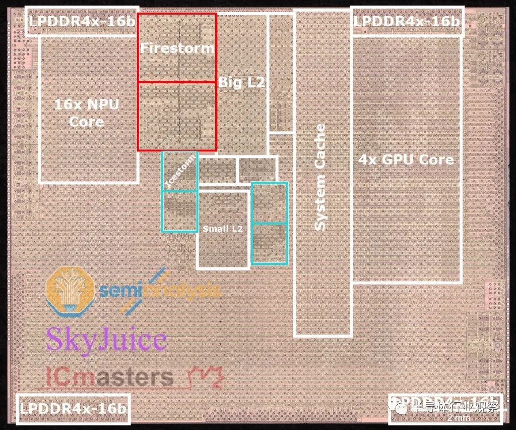 Apple A14 Bionic的最大突破在于它向着业界最小的5nm制造节点发展。但有趣的是,分析表明,向5nm的迁移仅使芯片尺寸缩小了1.49倍,而不是TSMC声称的5nm缩小了1.8倍。这主要是因为缩小芯片的内部工作变得越来越困难,尤其是在内存方面。无论如何,这并不是苹果最新芯片唯一的新事物。