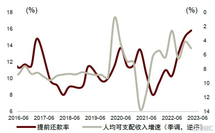 图表9:人均可支配收入与提前还款率之间的关系