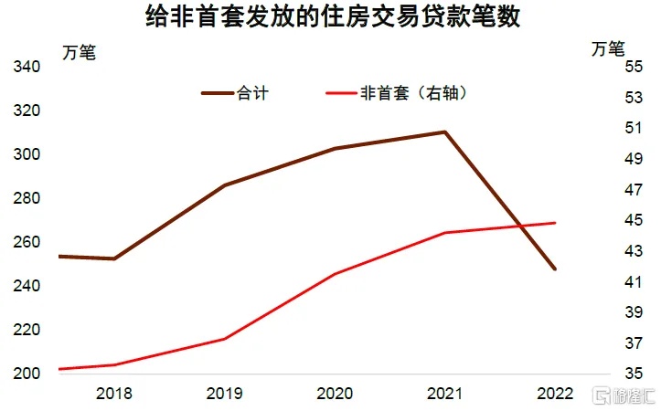 改善型需求内生动力强,但反弹幅度也受到其他因素影响。从公积金贷款的样本来看,2022年住房交易套数下降约20%,但是非首套购房数量仍然同比增长1.4%,显示出改善型需求有较强的韧性,但也同时说明非首套购房的基数并不算低。在房价仍在上涨的2021年,非首套购房数量的同比增速在11%左右。假设这次非首套房销售增速不高于11%,那么边际上或对未来数月的销售同比增速拉抬2个百分点左右。