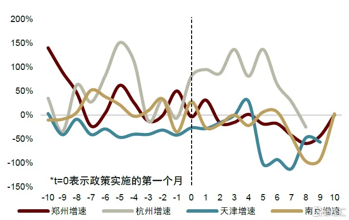 图表5:“认房认贷”调整后四城新房销售增速(剔除全国性趋势影响)