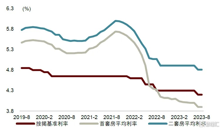 首先是存量房贷利率的下调。本次通知规定9月25日起,存量首套房贷借款人可申请置换存量贷款,新发利率水平不得低于原贷款发放时所在城市首套利率政策下限。2022年5月以来全国首套房政策利率下限为LPR-20bp,但各城市并不相同,如北京2019年10月以来、上海2021年7月以来、深圳2022年5月以来的首套房贷利率下限分别为LPR+55bp、LPR+35bp和LPR+30bp。同时,不同时间点也不相同,比如郑州2019年10月至2022年5月的首套利率下限为LPR+5bp,但2023年以来则为LPR-50bp。
