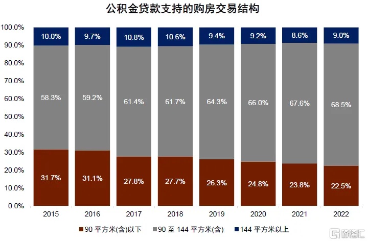 房价上升,继而提振购房者信心,带动购房需求,是投资者广泛期待的一种扩散效应。尽管需求端杠杆放松、总体购买力上升,或在供给一定的情况下有提振房价的作用。我们也要注意到,“认房不认贷”支持某些“卖一买一”刚性改善型人群的购房行为,带来供给和需求的同时上升,比如偏小户型、低总价的供给增加,偏大户型、总价较高的需求上升,对房价的影响可能是分化。2015-2022年小户型的需求总体上趋势往下,在供给增加的背景下,这类房型的价格上行空间可能不会显著加大。比如杭州认房认贷调整后销售量有较大的反弹,但房价走势与此并不一致。
