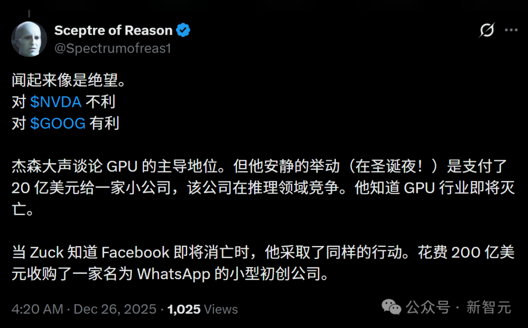 就在所有人以为英伟达可以高枕无忧时,老黄用一场200亿美元的「圣诞惊天收购」向世界宣告:我比任何人都清楚威胁来自哪里,而且我会在它萌芽时,就将其纳入版图。