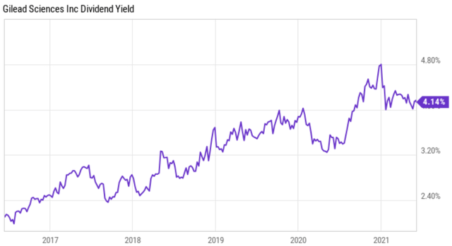 As seen below, GILD’s dividend yield is now nearly at the highest level over the past 10 years, as a result of both relative undervaluation and robust dividend growth over this time frame. Note: the following chart shows the dividend yield based on the trailing 12 months’ dividends.