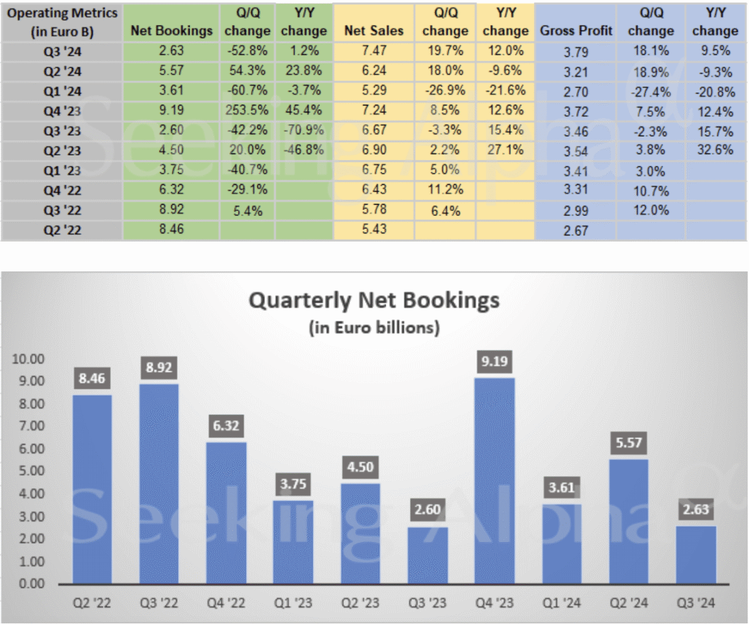 净预订量非常疲软,环比下降 52%。尽管阿斯麦的收益在去年有所上升,但确实存在很大的波动,而且增长并不像英伟达那样爆炸性。