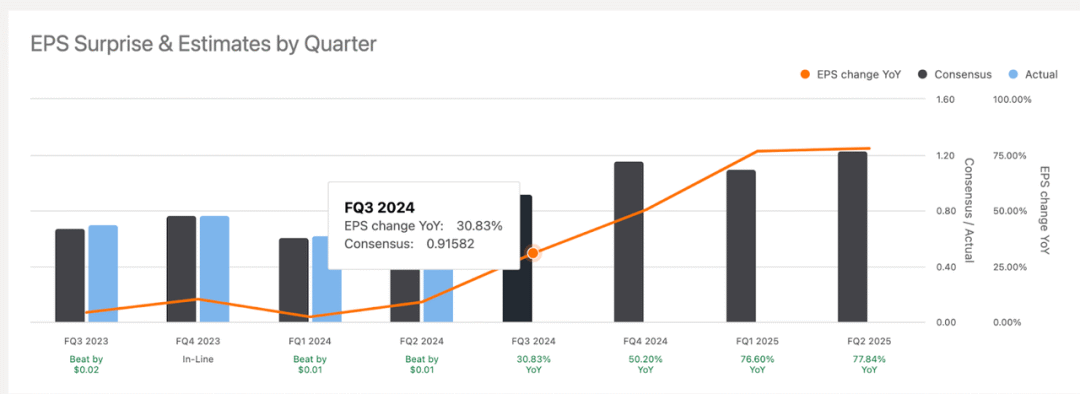 我们可以看到,该公司过去四个季度的业绩均略高于预期,投资者对此也抱有同样的期待。