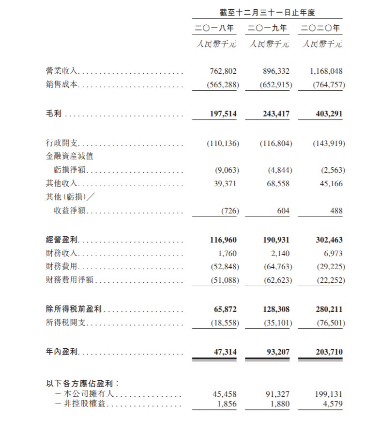 财务状况方面,于2018年、2019年及2020年,公司的营业收入总额分别为人民币7.63亿元、人民币8.96亿元及人民币11.68亿元,2018~2020年的复合增长率达23.7%,同期录得的净利润则分别为人民币4730万元、人民币9320万元及人民币2.04亿元,2018~2020年的复合增长率达107.7%。行业方面,根据中指研究院的统计和预测,中国商业物业在管面积从2015年的14亿平方米,增加至2020年的23亿平方米,2015~2020年的复合年增长率为10.44%,预计将于2025年继续增加至30.0亿平方米。