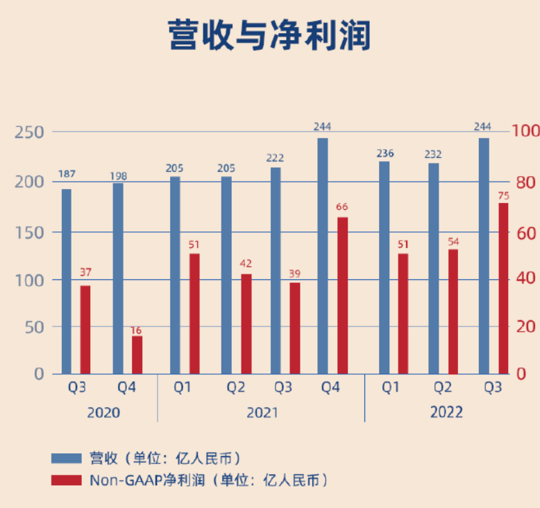 网易2022年第三季度营收(亿元):244,同比增长10.1%;预期:246.15,前值:222。