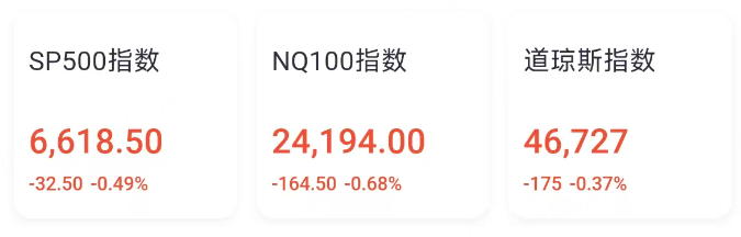同时, 英伟达 跌超1%,苹果跌0.74%,亚马逊跌0.6%,Meta跌0.45%,微软跌0.25%,谷歌涨0.28%。