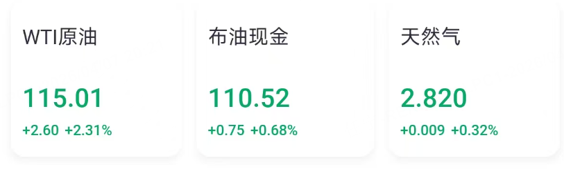 油、气价格拉升。美军于(当地时间)周二早些时候对哈尔克岛上的50多个军事目标发动了打击。特朗普已将(美东时间)周二晚设定为伊朗重新开放霍尔木兹海峡的最后期限,否则其将面临能源基础设施遭受毁灭性打击的风险。