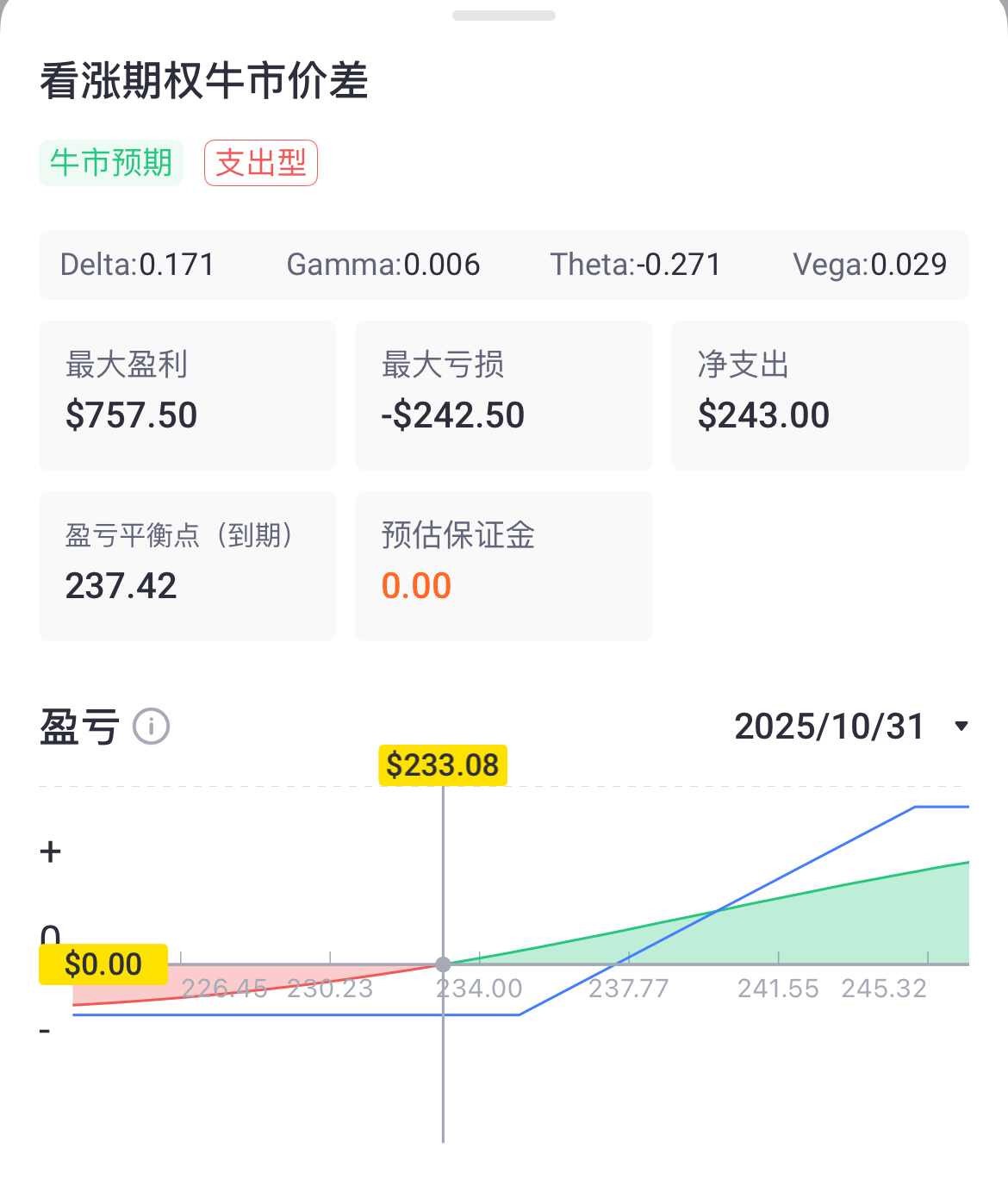 买入本周五(10月31日)到期的行权价为235美元的亚马逊看涨期权,同时卖出行权价为245美元的亚马逊看涨期权。