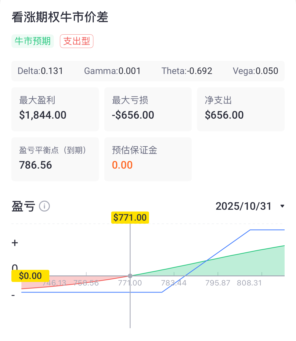 买入本周五(10月31日)到期的行权价为780美元的Meta 看涨期权,同时卖出行权价为805美元的Meta 看涨期权。