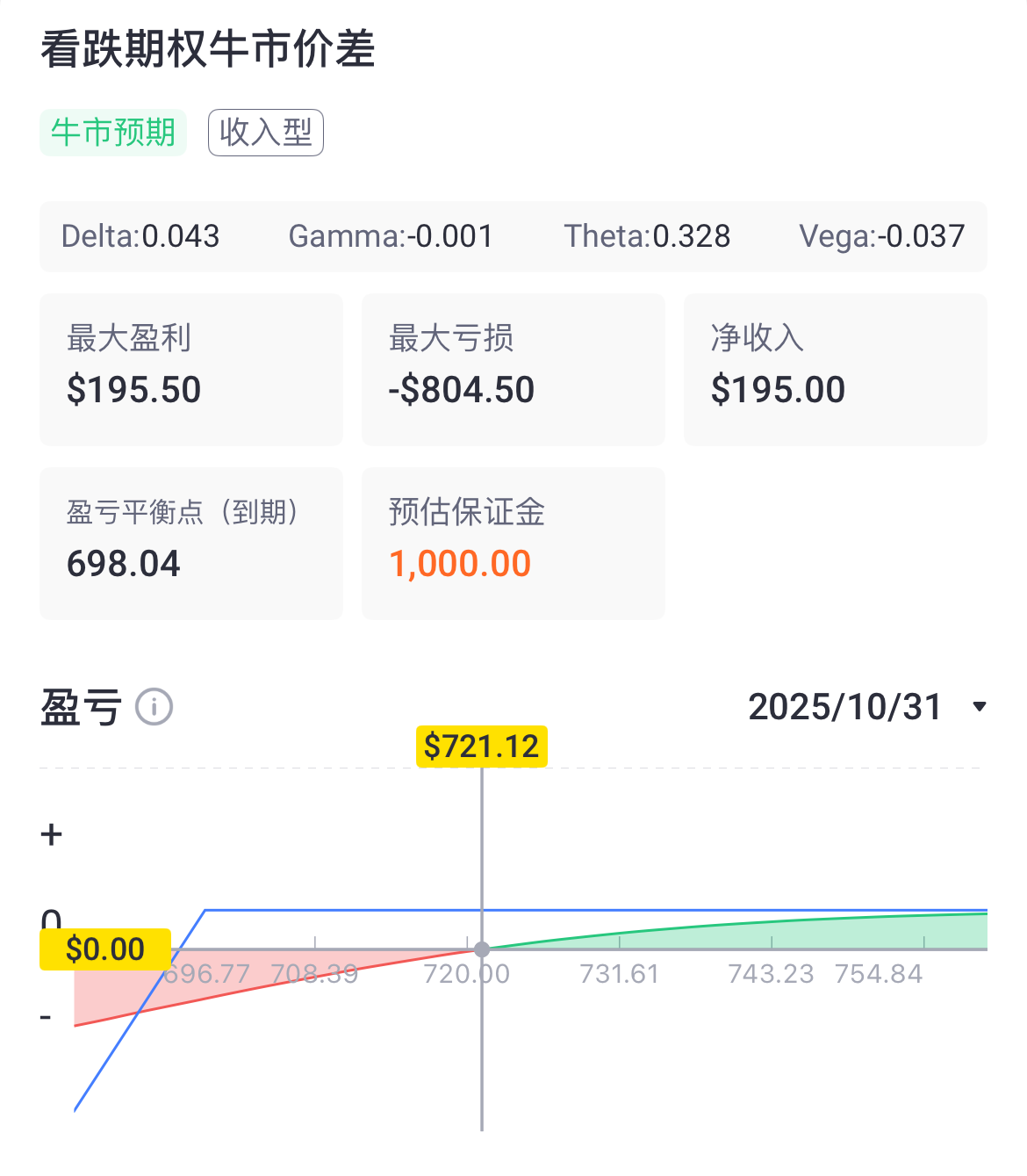 卖出一张本周五(10月31日)到期的行权价为700美元的Meta 看跌期权,同时买入一张行权价为690美元的Meta 看跌期权。