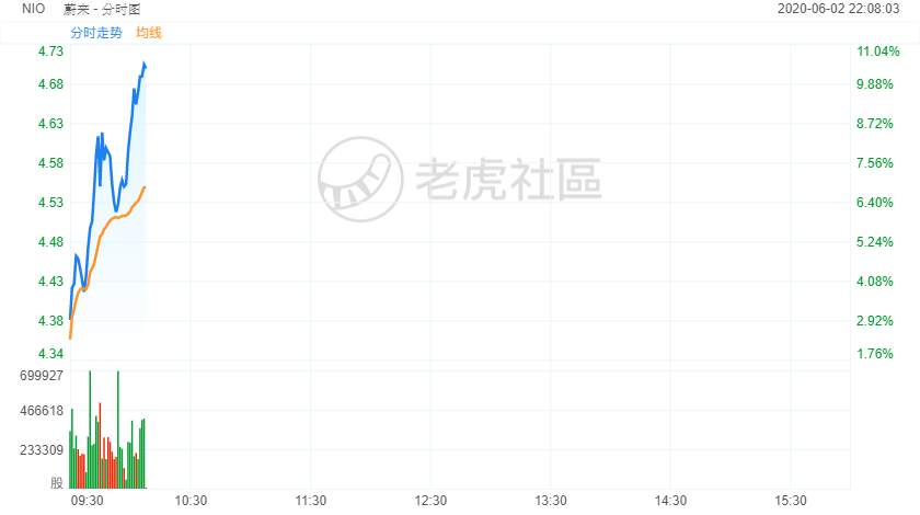 6月2日,蔚来汽车涨幅扩大至10%,为2月下旬来最高。