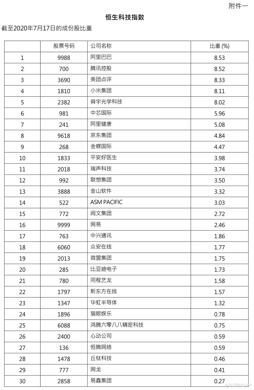 7月20日,恒生指数有限公司公布,将于2020年7月27日(星期一)推出恒生科技指数,新指数将会追踪经筛选后最大的30家于香港上市的科技企业。