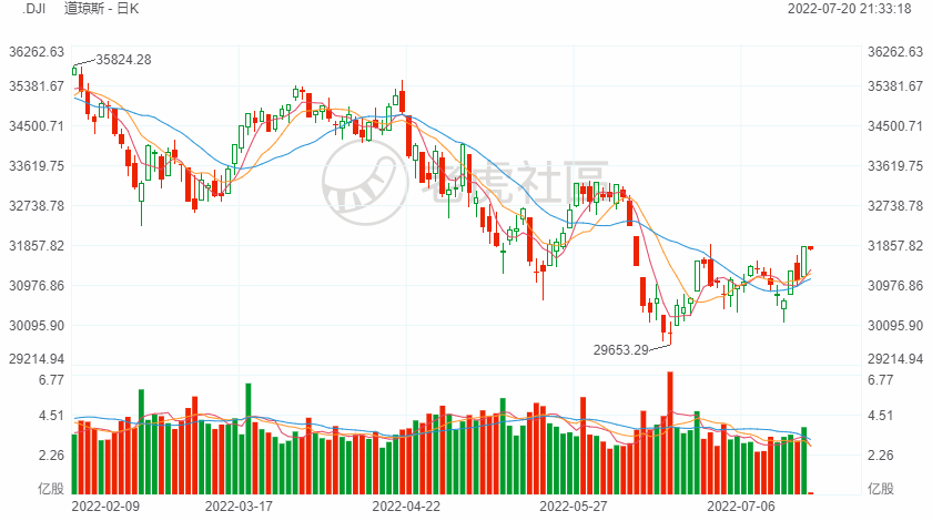 7月20日周三,道琼斯指数开盘下跌14.44点,跌幅0.05%,报31812.61点;标普500指数开盘下跌3.59点,跌幅0.09%,报3933.10点;纳斯达克综合指数开盘下跌4.71点,跌幅0.04%,报11708.43点。