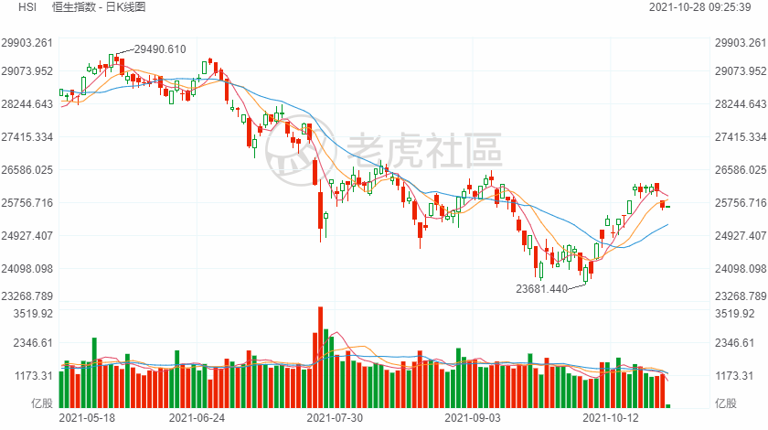 10月28日讯,港股三大指数高开,恒指涨0.08%报25648点,国指涨0.1%报9102点,恒生科技指数涨0.66%报6484点。盘面上,昨日下挫的大型科技股多数上涨,美团高开2.46%,阿里巴巴、快手、小米涨超1%,腾讯小幅低开0.25%;电力股继续走强,华能国际电力涨近4%,中国电力等皆有涨幅;光伏股、乳制品股、体育用品股、啤酒股多数上涨,澳优大涨超7%,连跌多日的内房股与物管股反弹;保险股、煤炭股、体育用品股、铝业股普跌。昨日暴涨近60%的创维集团继续高开近5%。
