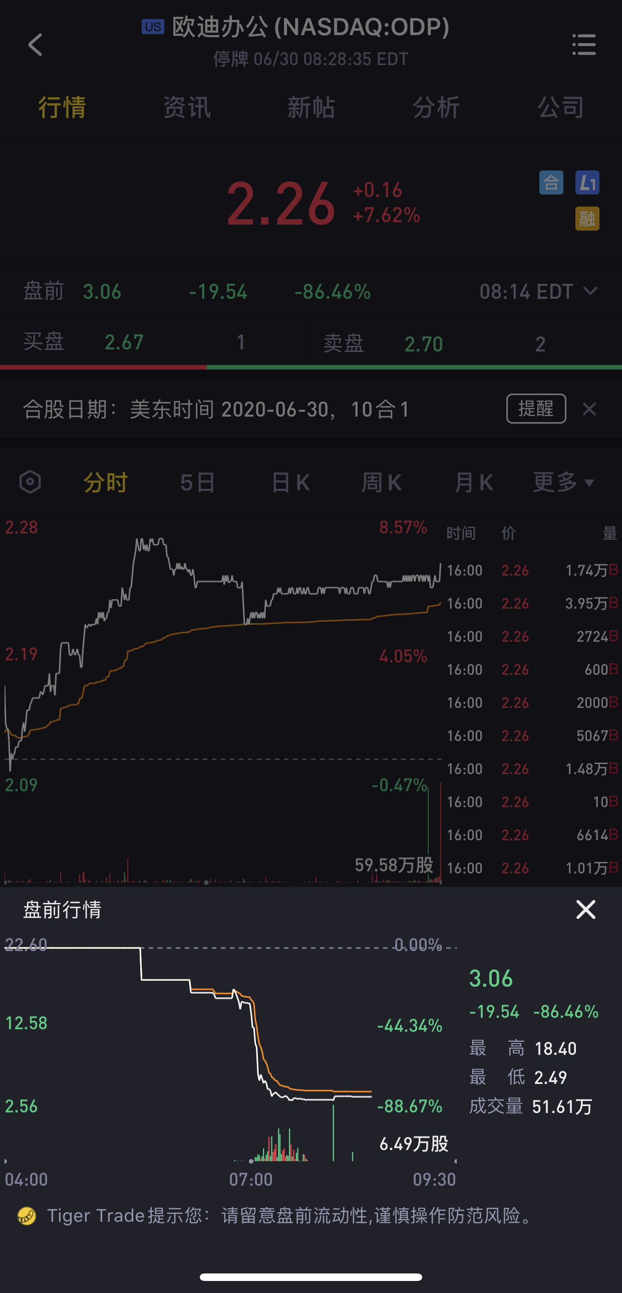 欧迪办公盘前暴跌86%,纳斯达克交易所:正在审查欧迪办公中潜在的错误交易。
