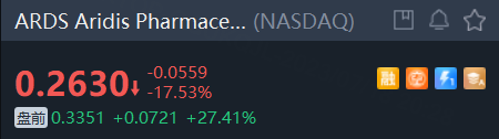 制药公司Aridis Pharmaceuticals涨幅收窄至近30%,公司达成协议在欧洲进行肺炎治疗的3期研究。