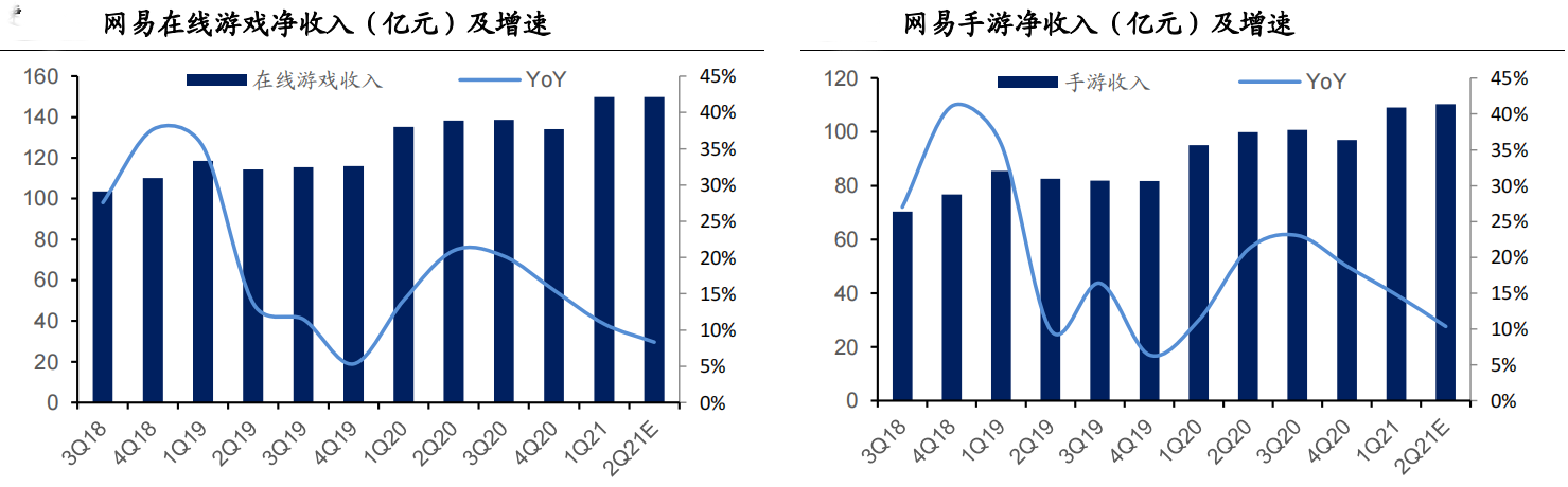 预计网易二季度在线游戏业务有望实现营收146亿元,同比增速放缓至5%左右,手游和端游增速均较去年同期放缓,这主要去年同期游戏表现出色带来高基数,本季度无重磅新游推出,以及季节性影响。