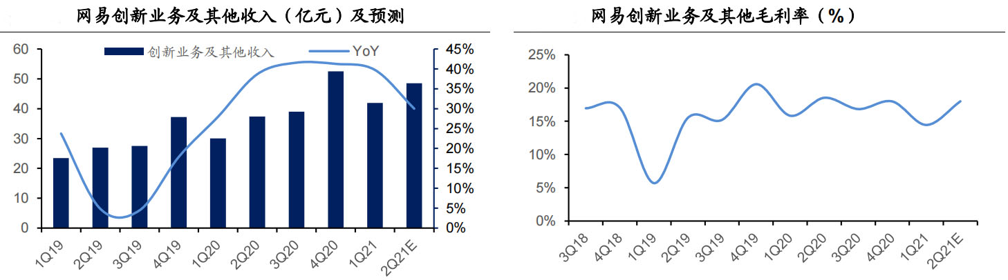 预期网易二季度创新持续高速发展。收入增长主要由网易云音乐驱动,尤其是社交娱乐业务的快速增长。“618”大促推动电商业务复苏,6月18日网易严选登京东当天家居日用销售榜第一。预计二季度创新业务及其他毛利率环比小幅提升,主要因收入结构优化,高毛利业务占比提升。独家版权退出历史舞台后,有望继续降低网易云音乐版权成本率,改善创新业务盈利性。