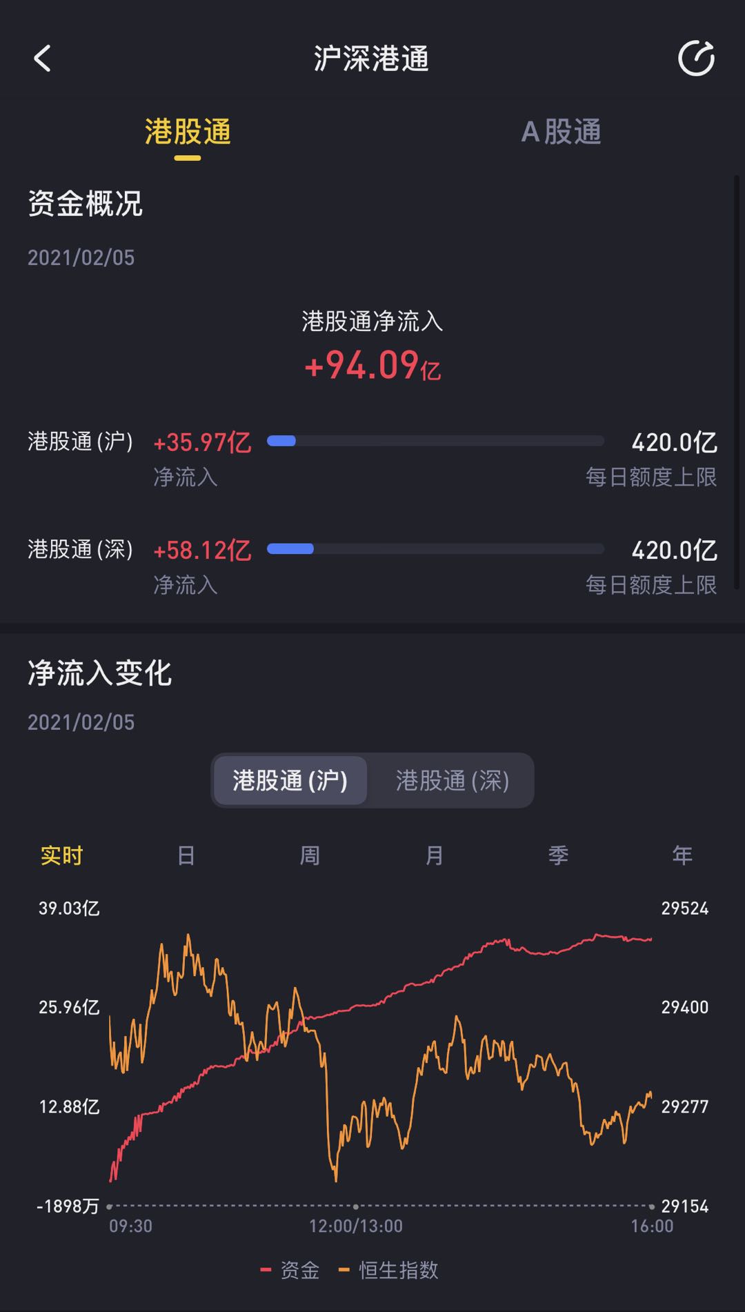 今日南下资金大幅净流入94.09亿港元,大市成交额为2393.75亿港元。