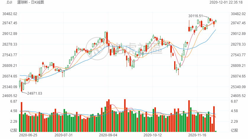 12月1日(周二)美股开盘,标普500指数上涨35.90点,涨幅0.99%,报3657.52点;纳斯达克指数上涨108.10点,涨幅0.89%,报12306.88点;道琼斯指数开盘上涨315.40点,涨幅1.06%,报29954.05点。