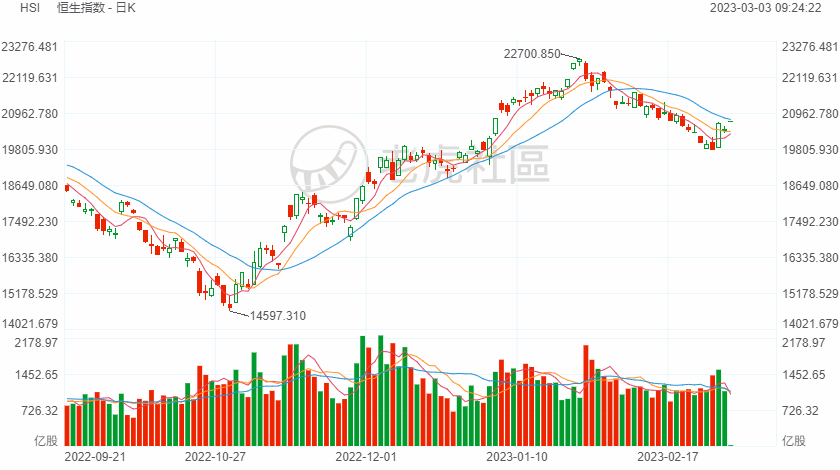 3月3日讯,隔夜美股集体收涨,中概指数强势。港股高开明显,恒指涨1.34%,国指涨1.61%,恒生科技指数涨2.58%。盘面上,回港中概股大涨,哔哩哔哩绩后涨10%,百度涨4.5%,小鹏汽车、京东、万国数据涨超3%,阿里巴巴、网易等皆上涨;首单光伏项目REITs获批,光伏股走强;昨日领衔下跌的汽车股集体反弹,生物科技股、体育用品股、濠赌股、燃气股、苹果概念股齐涨。另一方面,药品股、航空股、三台概念股部分下跌,白云山跌1.25%。