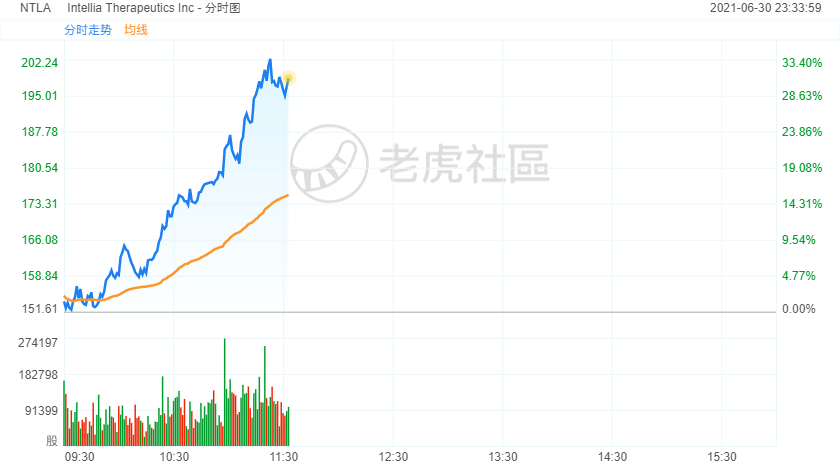 6月30日,基因编译公司Intellia Therapeutics(NTLA.O)盘中涨超30%,近日,公司和再生元制药联合宣布,在研CRISPR体内基因组编辑疗法NTLA-2001在1期临床试验中获得积极结果。单剂NTLA-2001导致血清中的转甲状腺素蛋白水平(TTR)平均下降87%,在第28天TTR降低幅度最大可达96%。