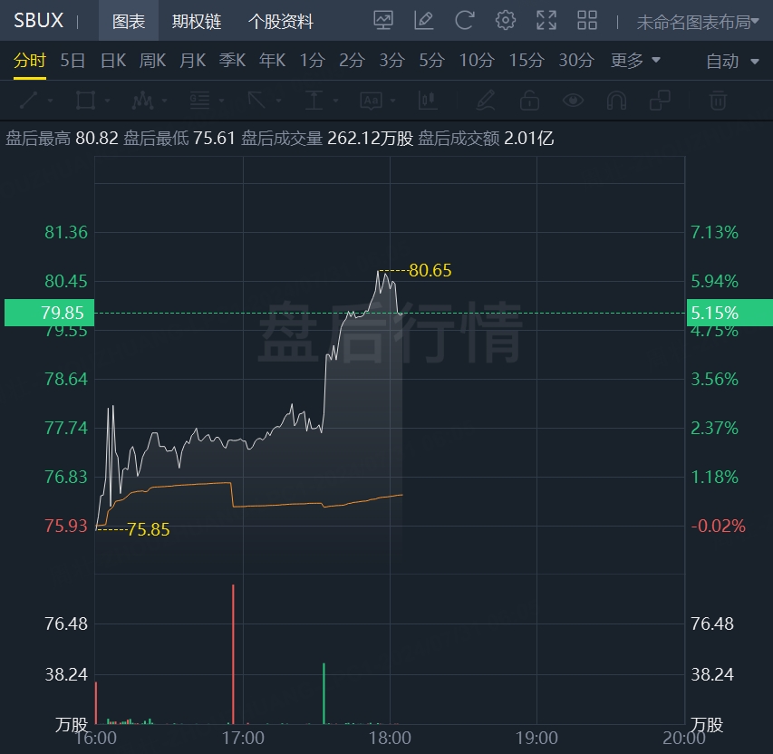 财报发布后,星巴克盘前股价拉升,现涨超5%。
