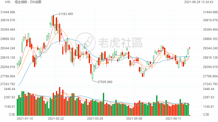 6月28日讯,恒指开盘涨0.27%,科技股涨幅居前;信达生物涨超4%,用于治疗肝癌的PD-1免疫联合疗法获国家药监局批准。大型科技股集体上涨。腾讯涨0.25%,阿里巴巴涨近3%,美团$(03690)$涨超1%,京东、百度涨超3%,哔哩哔哩一度涨4%。
