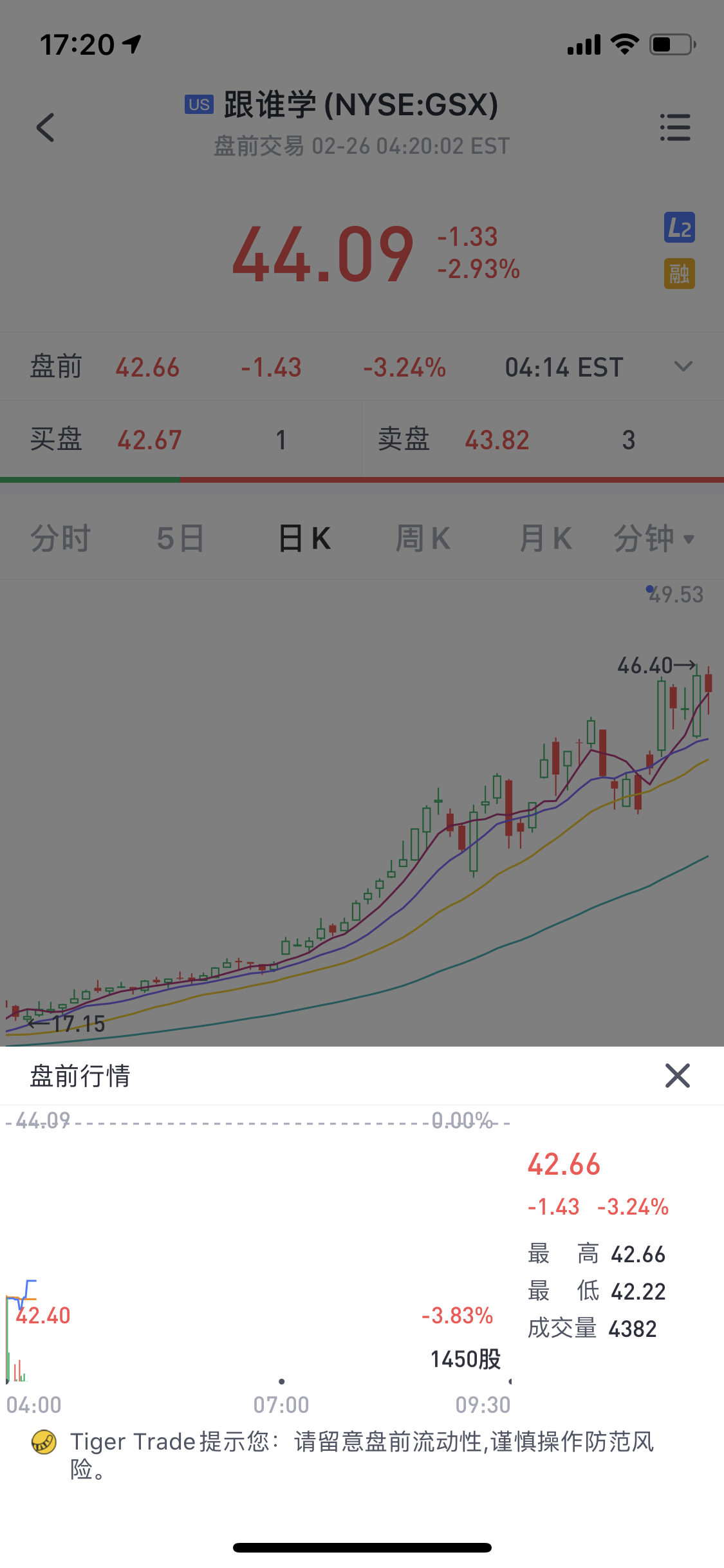 2月26日,跟谁学美股盘前跌3.24%,报42.66美元。