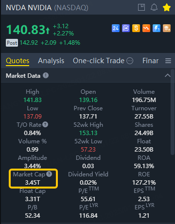 Nvidia crossed above $3.45T in market capitalization on Tuesday’s trade, exceeding Apple’s $3.37T capitalization. Nvidia in the session rose 2.3% to $140.83 while Apple dropped 3.2% to $222.64.