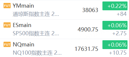 1月25日,美股三大股指期货上涨,截止发稿,道指期货涨0.22%,纳指期货涨0.06%,标普500指数期货涨0.06%。
